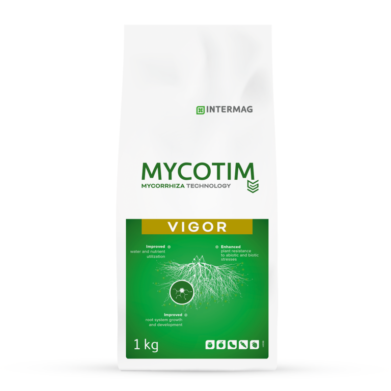 Products for mycorrhization of the plant root system. Products contain fungi that form a symbiosis with the roots and positively affect their growth, size, and range. Mycorrhized plants better absorb water and nutrients.