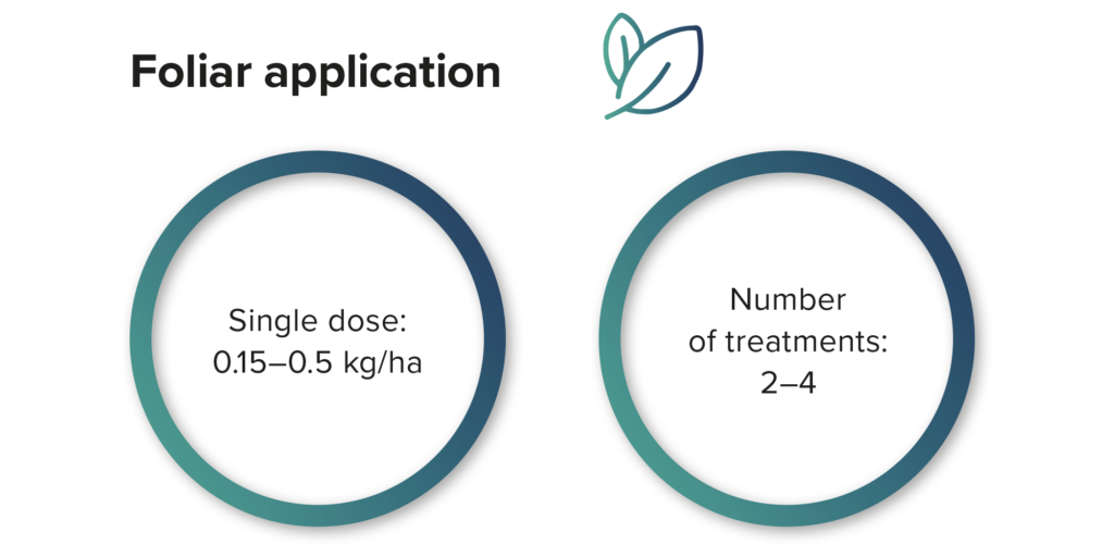 Foliar treatments – single dose 0.1–0.6 kg/ha |